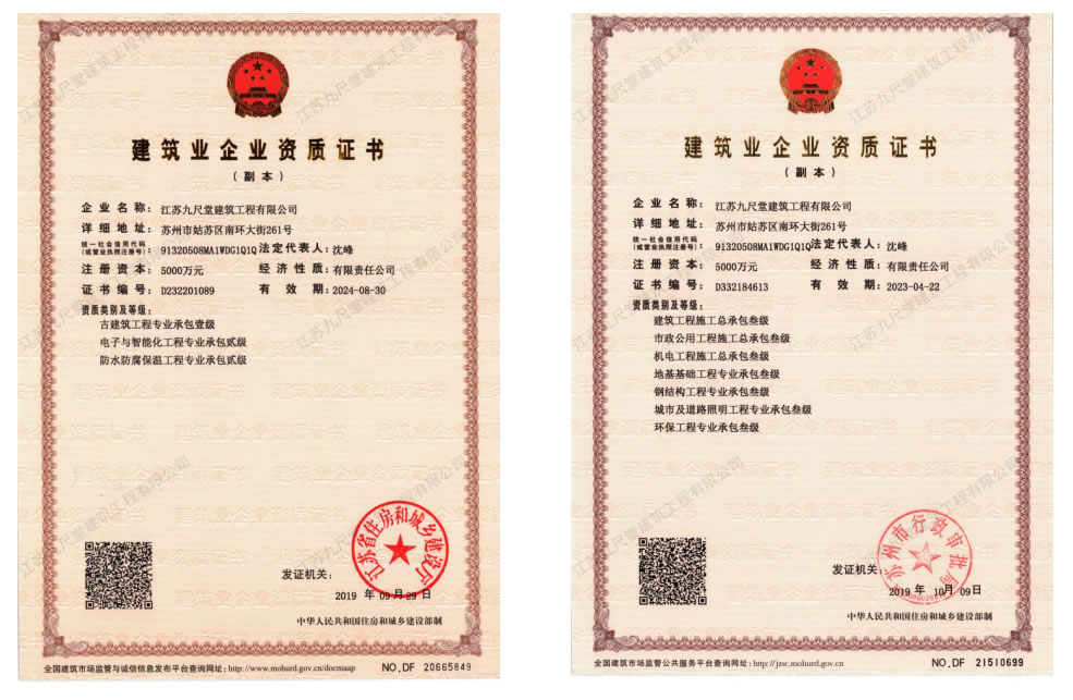 “九層之臺、起于累土;九尺之堂、始于微末”。江蘇九尺堂建筑工程有限公司自重組以來,經歷了數年的輝煌歷程。公司地處以園林典雅聞名天下的中國蘇州。集建筑、山水、花木、雕刻、書畫等于一體的蘇州文化藝術,成為了九尺堂人孕育靈感與迸發激情的沃土。